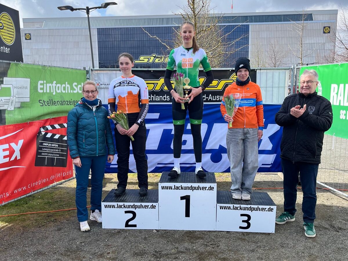 Die Fahrerinnen der weiblichen Jugend U17 fuhren im Rennen der Schülerklasse U15 mit und belegten die Ränge fünf (Carla-Luisa Leder), sieben (Frieda Schreiber) und acht (Marie-Luise Rosenkranz).