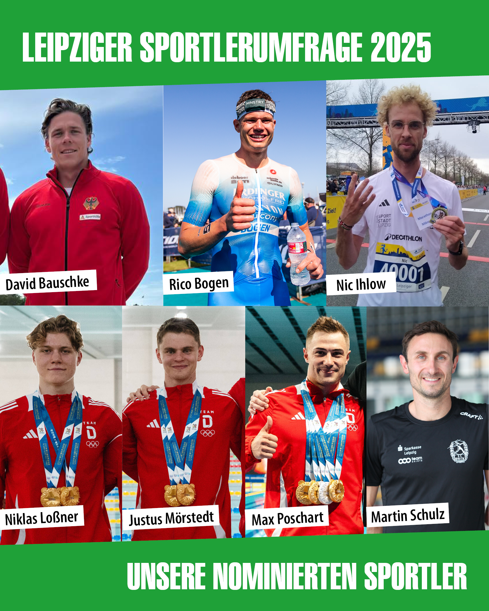 „Leipziger Sportler des Jahres 2025“ gesucht! Der Stadtsportbund Leipzig hat erneut seine Umfrage gestartet – abgestimmt werden kann noch bis zum 11. Januar 2026. Elf Mal sind unsere Athletinnen und Athleten bei der Wahl nominiert.