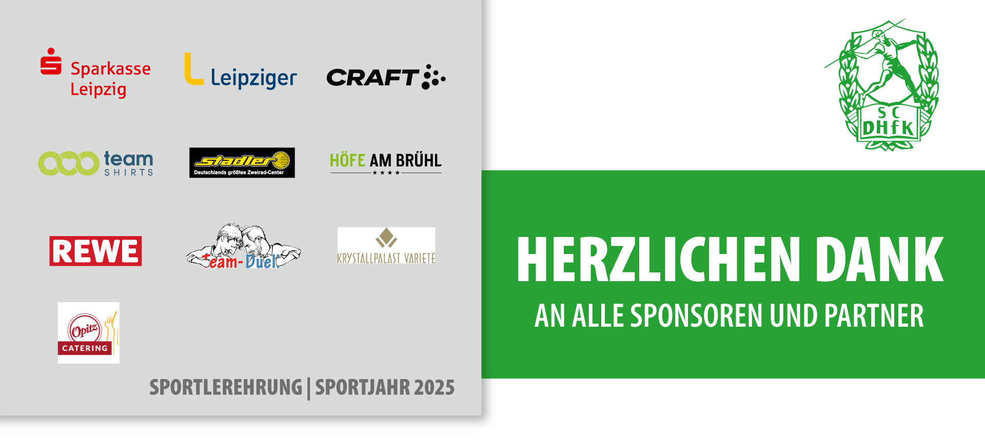 Ein großer Dank geht an die Sponsoren und vielen Unterstützer, die diese Sportlerehrung erst möglich gemacht haben, das Opitz Catering sowie an Dr. Dietmar Czekay, Vizepräsident Breitensport des SC DHfK Leipzig, der kurzfristig als Moderator eingesprungen war.