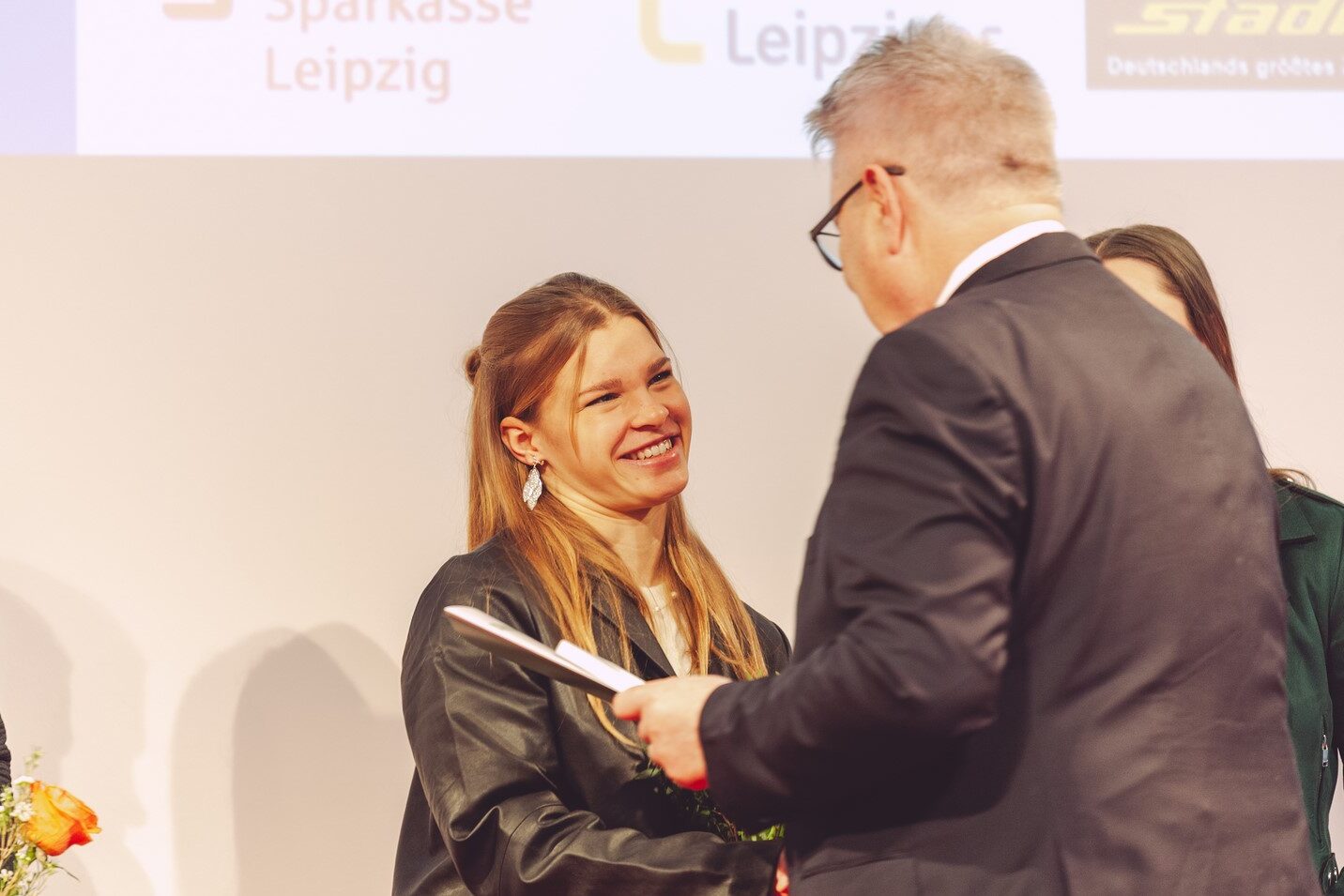 Der SC DHfK Leipzig hat gestern im Rahmen seiner Sportlerehrung im Mediencampus „Villa Ida“ die besten (Nachwuchs)-Sportlerinnen, Sportler, Mannschaften und Trainer des Jahres 2025 gekürt. Über die Auszeichnungen freuen durften sich Kanutin Ivana Schuck, Handballer Anton Voß, die Finswimmer Nadja Barthel und Max Poschart, die Finswimming-Männerstaffel sowie Trainer Lutz Riemann. Vor 150 Gästen im Saal und 600 Zuschauern im Livestream gab es viele weitere Auszeichnungen, emotionale Videobeiträge und berührende Musik- und Akrobatikauftritte.