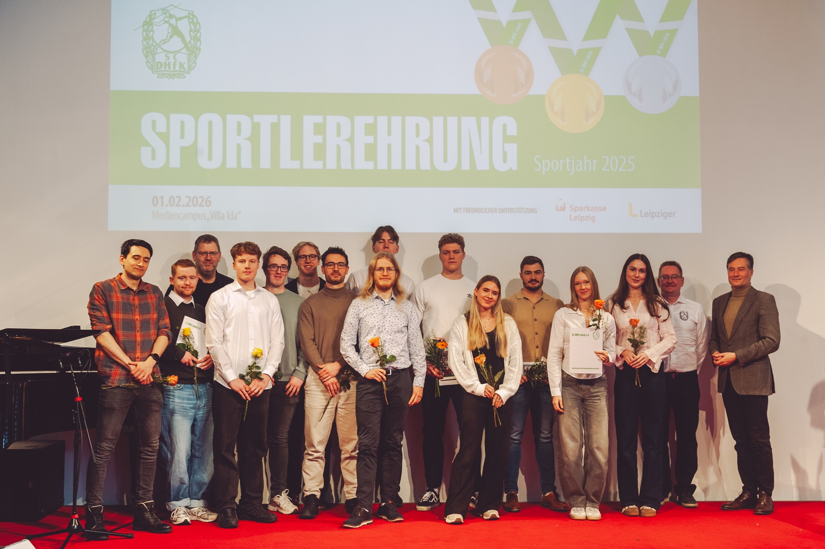 Leipzig. Der SC DHfK Leipzig hat seine Sportlerinnen und Sportler des Jahres 2025 gekürt! Über 150 Gäste aus Sport, Wirtschaft und Politik blickten gestern gemeinsam im Mediencampus „Villa Ida“ auf das Sportjahr 2025 zurück und verfolgten gespannt die Ehrungen der erfolgreichsten Athletinnen und Athleten, Trainerinnen und Trainer sowie Mannschaften des Vereins. Zuvor hatten die 21 Abteilungen die Möglichkeit erhalten, ihre erfolgreichsten Sportlerinnen und Sportler des Jahres 2025 zu nominieren. In einer vereinsinternen Wahl wurden anschließend die Siegerinnen und Sieger ermittelt.