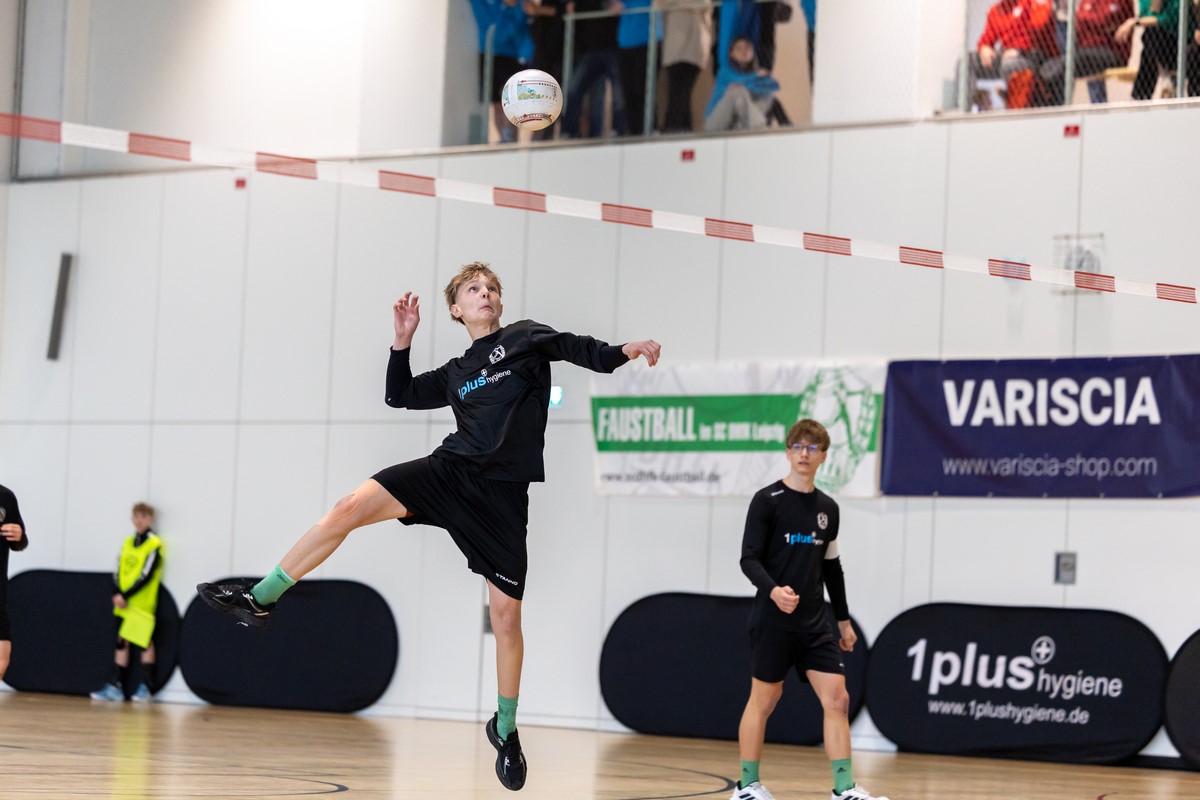 Mit dem Rückenwind des Heimpublikums stand ein spannendes, aber auch nervenaufreibendes Wochenende der Deutschen U16-Faustballmeisterschaft bevor. Nach der kräftezehrenden U18-DM vor einer Woche wurden die Leipziger zu einer Umstellung des etatmäßigen Angriffs-Duos gezwungen. Im ersten Spiel gegen den Mitfavoriten TV Brettorf wackelte die Mannschaft zunächst und gab den ersten Satz ab. Im Anschluss konnte das Spiel allerdings erfolgreich gedreht werden. Es folgten zwei souveräne Siege gegen Karlsdorf und Kubschütz, somit war das Halbfinalticket gelöst.